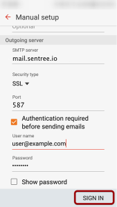 This is the name of the server which holds your email. Enter mail.sentree.io