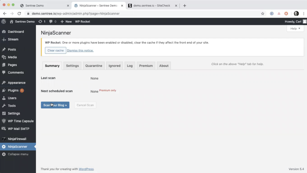 Click NinjaScanner in your left menu and then click Scan Your Blog. The scan will run. This could take a while if you have a large website.